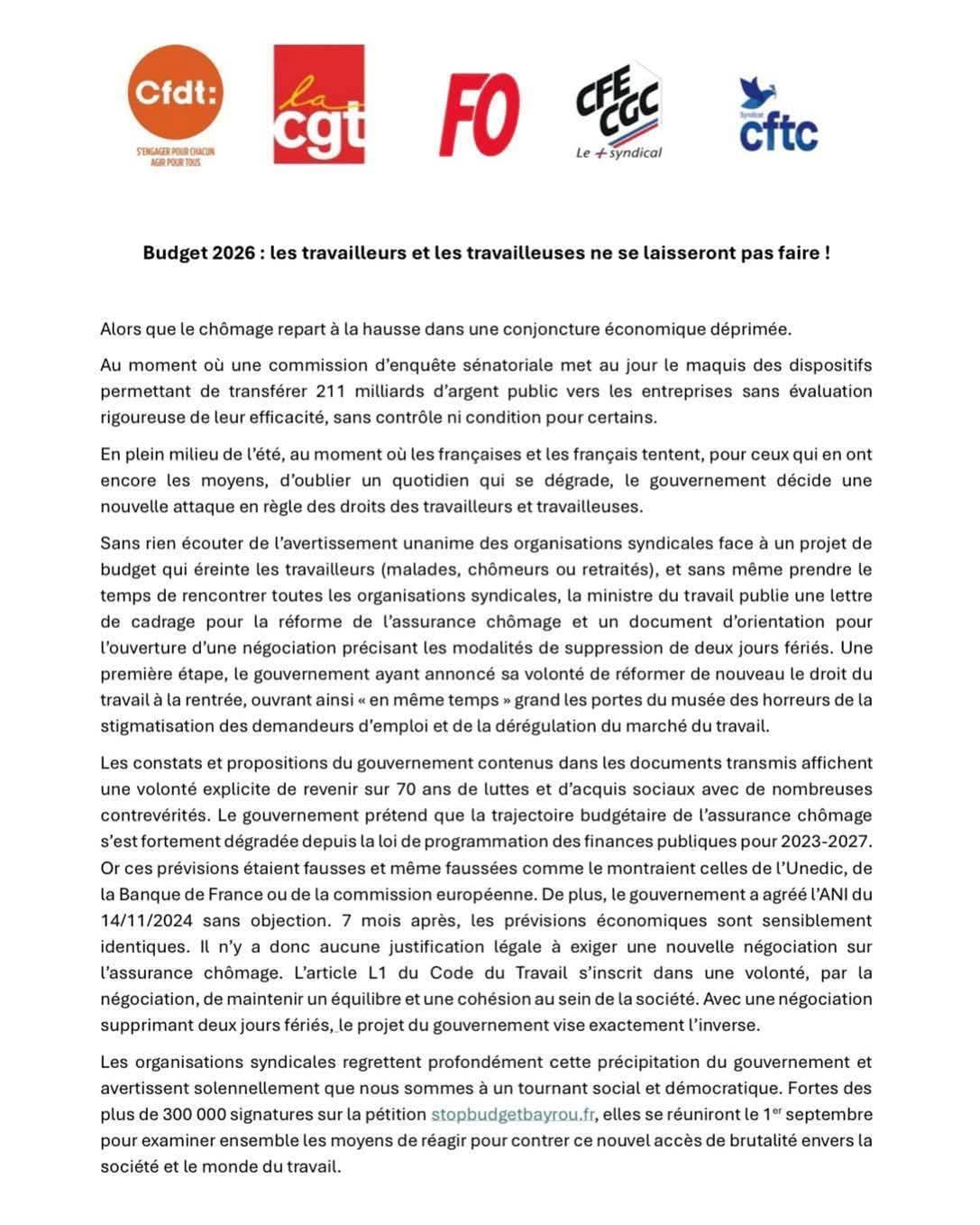 En savoir + : Communiqué CFDT